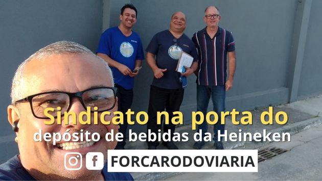 Nesta quinta-feira, dia 23, o Sindicato esteve na porta do depósito de bebidas da Heineken, no bairro Bracuí, por causa de mais uma reunião de apresentação da Convenção Coletiva com os funcionários da empresa.